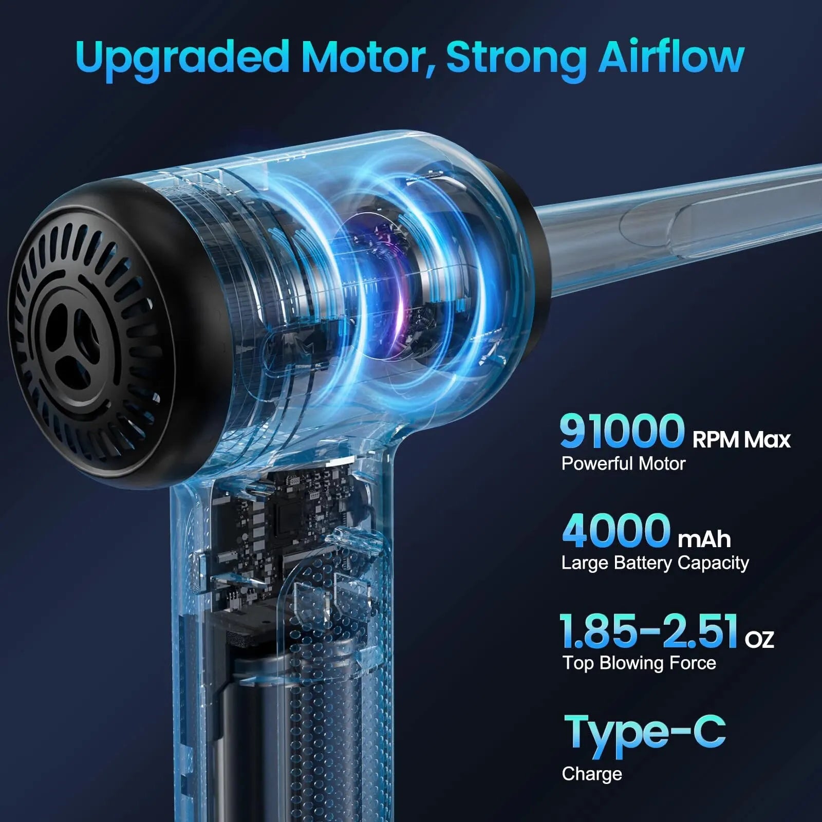 - Powerful Airflow & Suction: The strong blowing force ensures efficient dust removal, while the suction power helps collect dirt and debris for a clean, tidy environment.