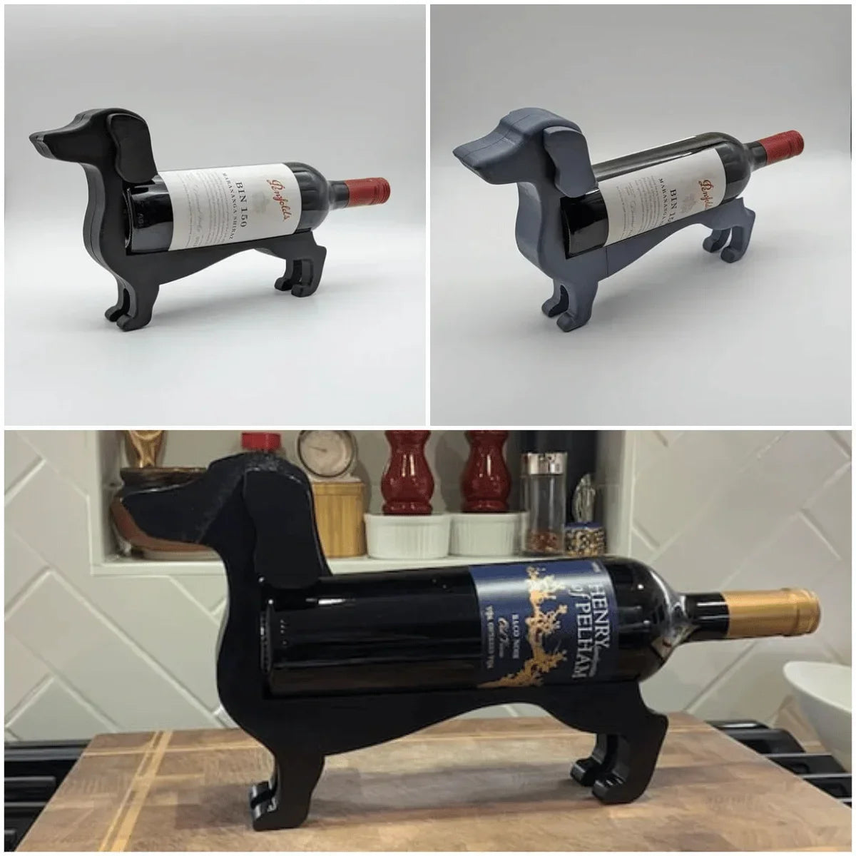 - Unique Dachshund Design: A fun and charming wine holder shaped like a Dachshund dog, perfect for displaying your favorite wine bottle. It’s a delightful way to combine functionality with style.